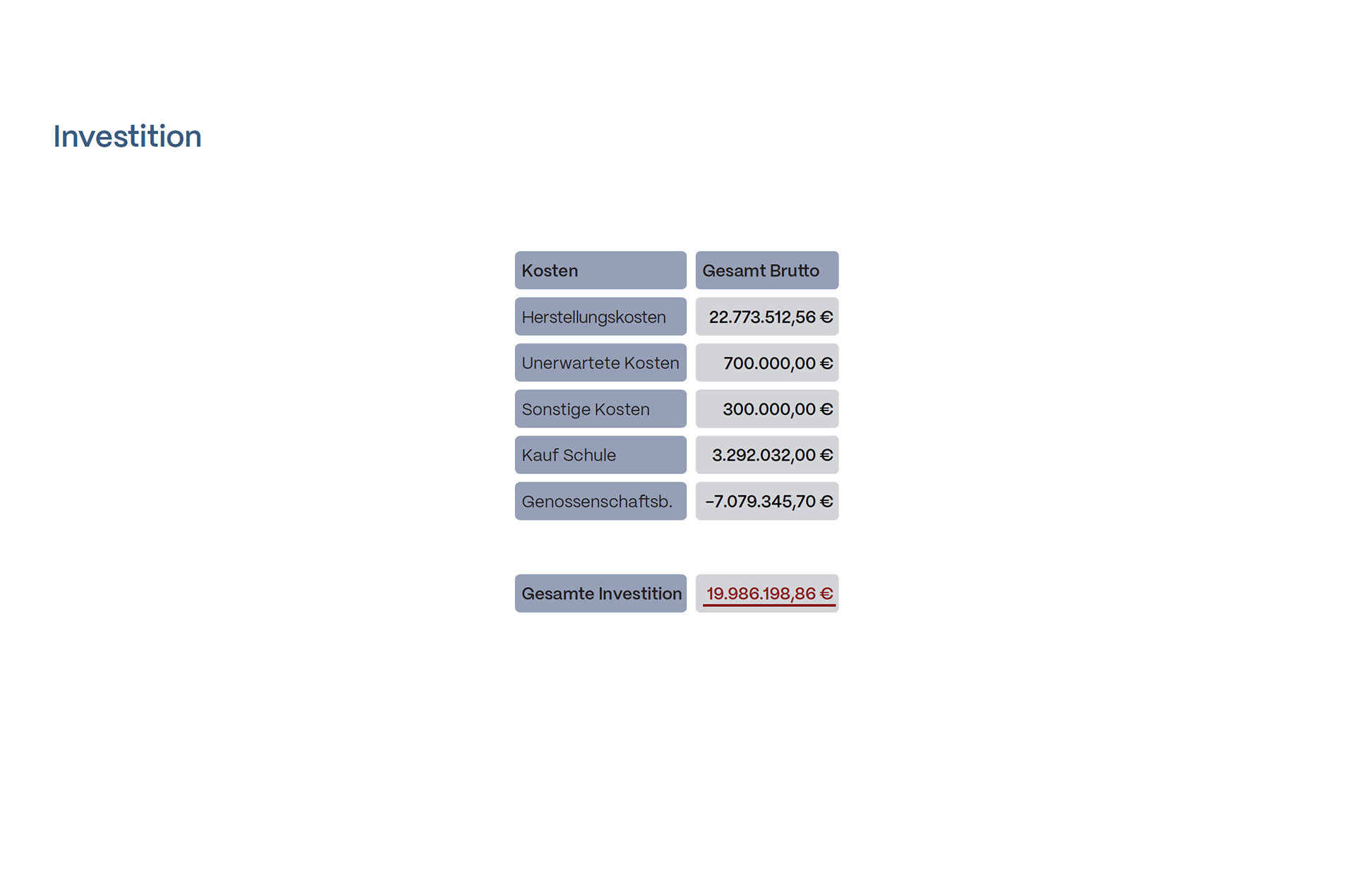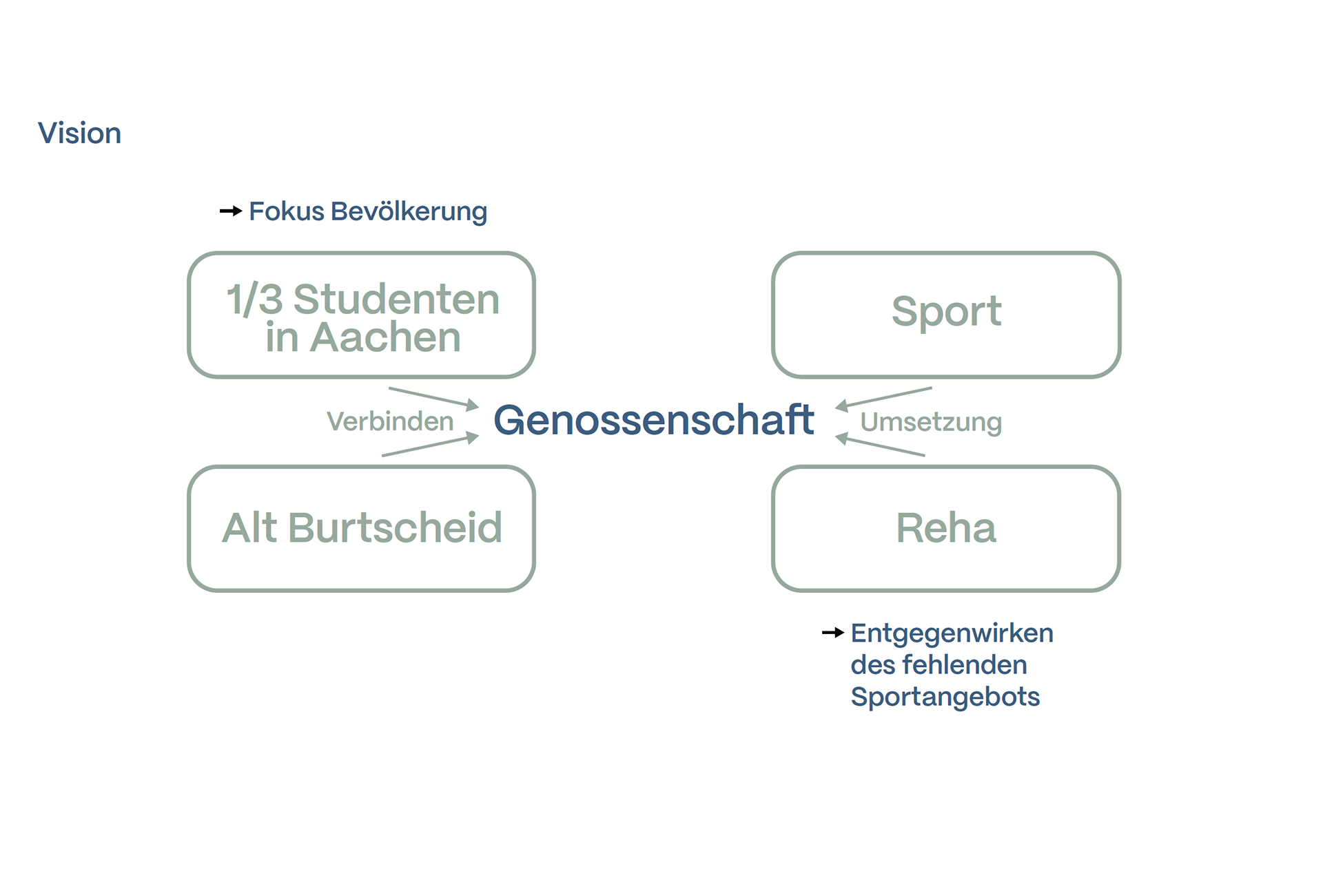 Den Bewohnern der Wohn-Genossenschaft soll es möglich sein, ohne ihren Wohnstandort zu wechseln, ihre unterschiedlichen Lebensanforderungen wie in einem Kreislauf zu durchleben und in der Genossenschaft wohnen bleiben zu können. Ein System von Förderern und Geförderten sichert den Zugang für Menschen unterschiedlicher finanzieller Hintergründe. Das Projekt setzt ein altruistisches Gedankengut voraus, das durch Menschen gefördert wird, die an ein experimentelleres Wohnkonzept glauben.
