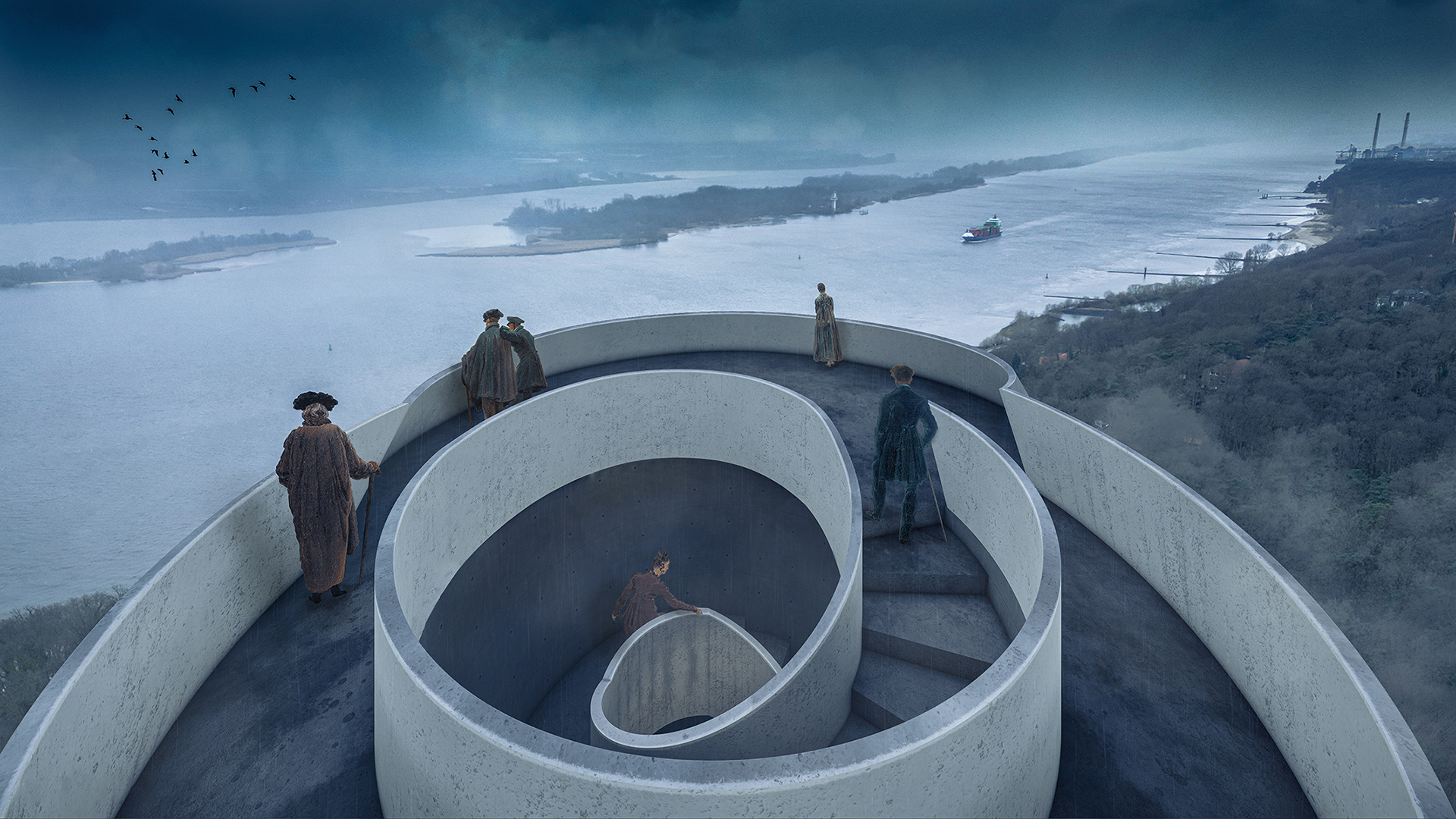 The tower‘s location in the fishing village of Blankenese, just outside Hamburg harbour, means that it is clearly visible to all skippers on the Elbe. They recognise the tower and know that it is time to pull in the sails and get the ship ready to dock.